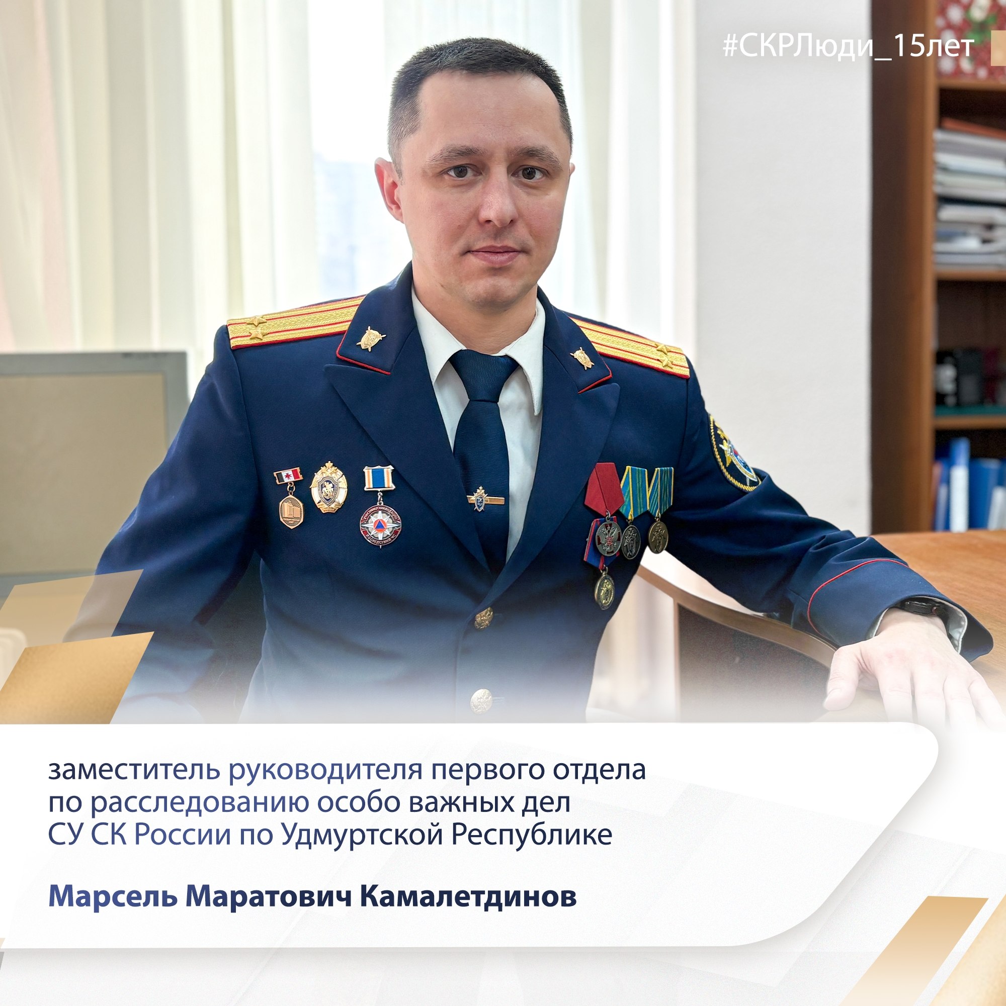 «СКРЛюди_15лет»: заместитель руководителя первого отдела по расследованию особо важных дел (о преступлениях против личности и общественной безопасности) следственного управления СК России по Удмуртской Республике Марсель Маратович...