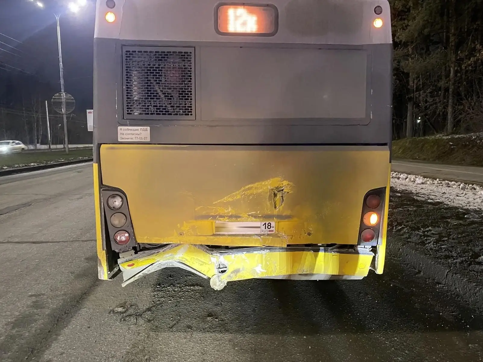 11 апреля 2026 года, около 22 часов 15 минут, напротив дома № 55 корп. 1, расположенного на ул. 10 лет Октября в г. Ижевске, 20-летний водитель автомобиля «Датсун Он-до», в пути следования, не соблюдая безопасную дистанцию, совершил столкновение с впереди движущимся рейсовым автобусом «МАЗ», под управлением 64 - летнего мужчины.