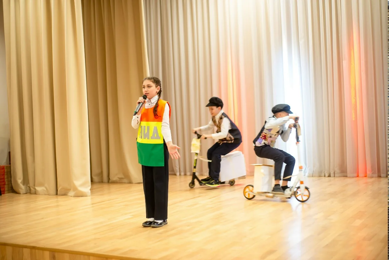 Перед тем, как команды окунулись в водоворот интеллектуальной игры, сцену наполнили юные герои – отряда ЮИД школы 74 г. Ижевска. Их театрализованное выступление стало ярким и запоминающимся вступлением, красочно и доступно продемонстрировав важность соблюдения ПДД. С помощью веселых сценок, зажигательных песен и выразительных танцев ребята показали, как легко избежать опасных ситуаций, если знать и применять правила, и как важно быть внимательным на дороге. Это зрелище не только развлекло зрителей, но и настроило их на серьезный, но позитивный лад, подчеркнув, что безопасность – это общее дело.