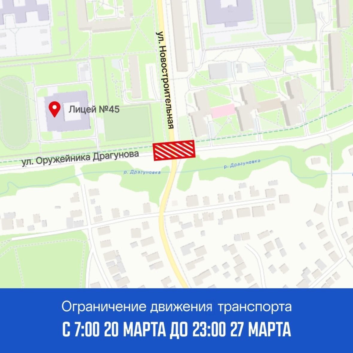 С 7.00 23 марта до 23.00 27 марта - на участке дороги по ул. Новостроительная в районе перекрестка с ул. Оружейника Драгунова.