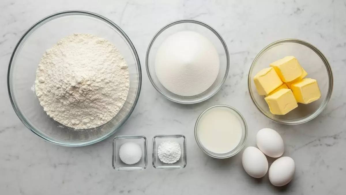 В глубокой миске соединить яйца, сахар и ванильный сахар, взбить до пышной массы. Затем добавить масло и молоко, хорошо перемешать. Постепенно ввести просеянную муку с разрыхлителем, добиваясь густоты, чтобы тесто держало форму.