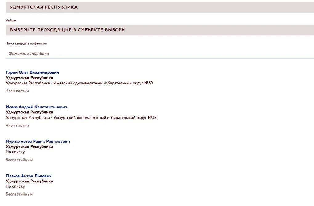 Ещё два кандидата решили принять участие в праймериз «Единой России» в Удмуртии. Напомним, с марта на портале были имена Олега Гарина и Андрея Исаева — действующих депутатов Государственной Думы от УР. Два новых кандидата — беспартийные.