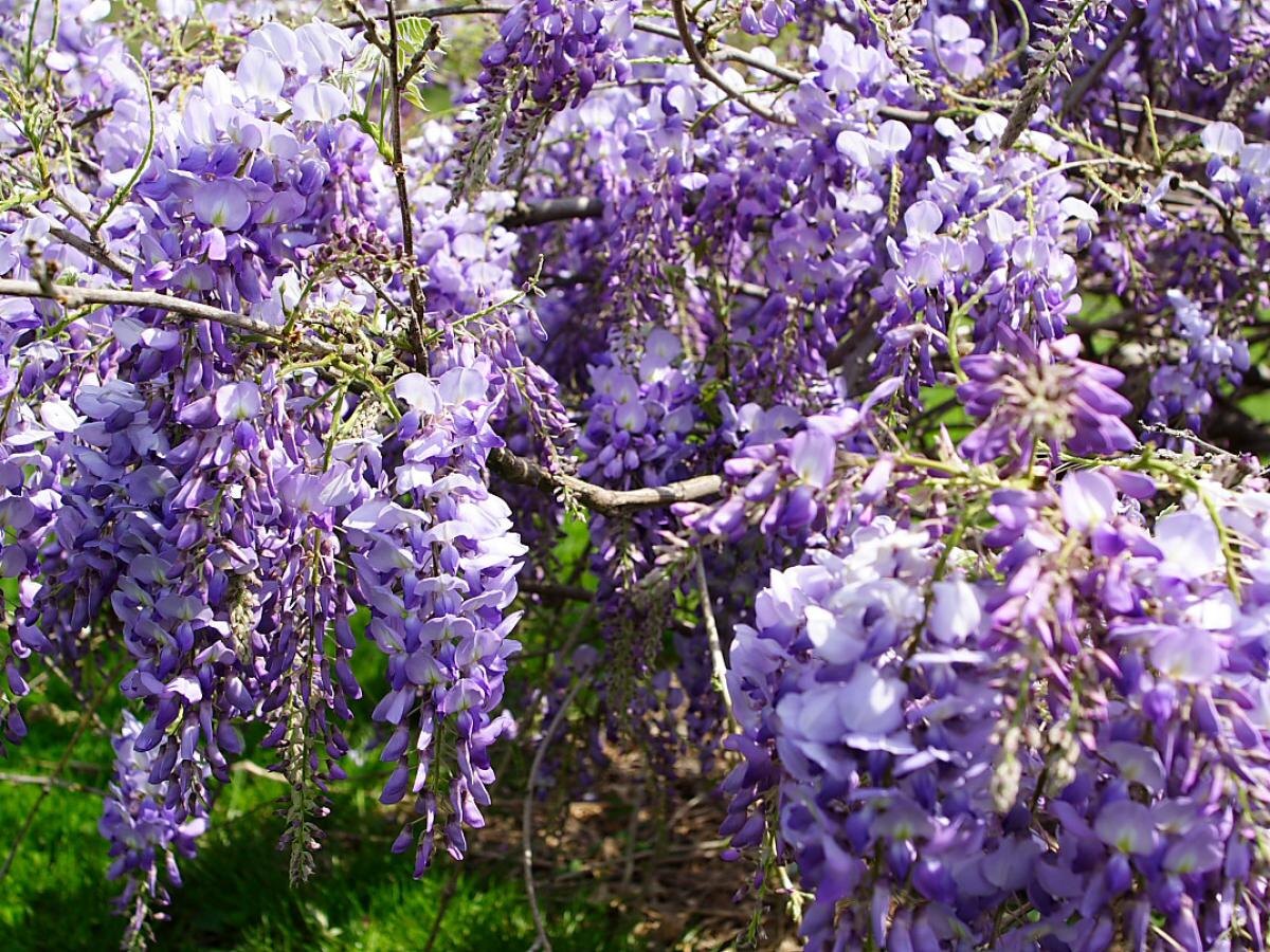 Глициния — это королева цветущих растений. Весной она радует обилием длинных кистей белых и лавандовых цветов, привнося в сад сладкий аромат. Чтобы избежать излишней запутанности, важно регулярно обрезать растения и поддерживать крепкую конструкцию.